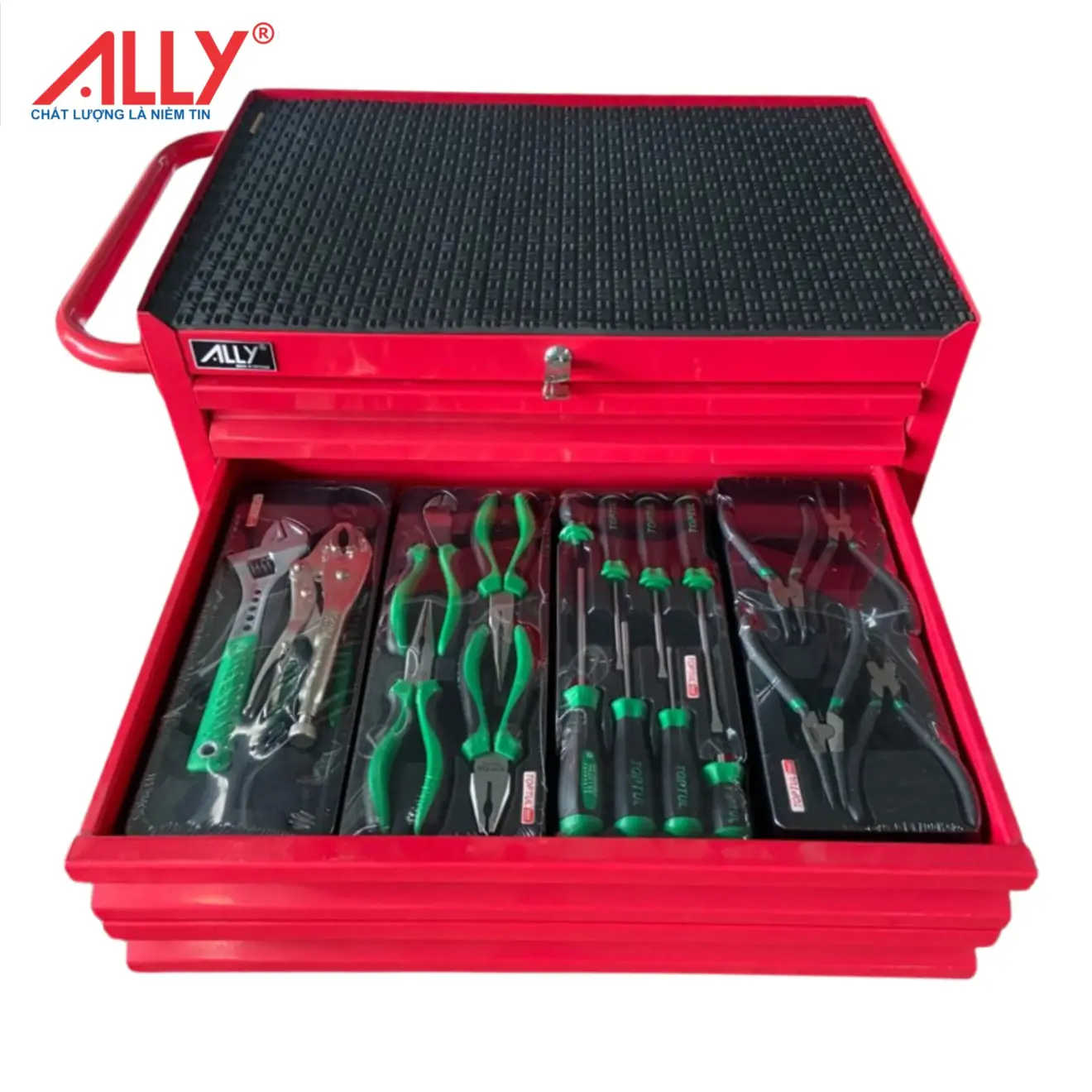 Tủ Sắt Nhiều Ngăn Đựng Đồ Nghề ALLY QT-07 – 157 Chi Tiết Dụng Cụ TOPTUL Chính Hãng